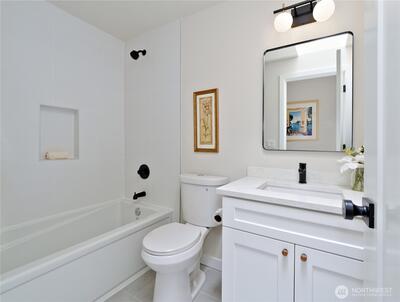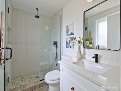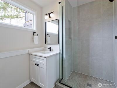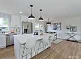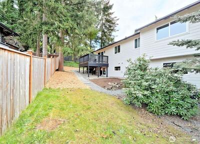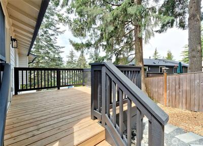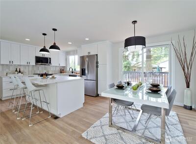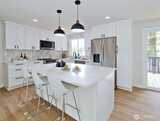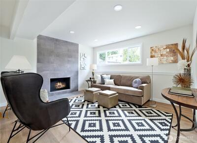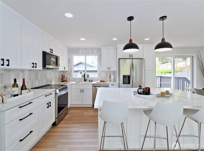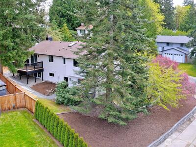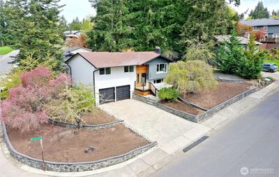 Sharply remodeled home in sought after Kingsgate 5 neighborhood. The main floor features an open living space with gas fireplace, dining room spacious new kitchen with quartz counters, stainless appliances, and a large center island. Easy access to the new deck and patio. This level also includes three bedrooms including the primary bedroom with tile shower. There is a second bathroom on this level to service guests and the other 2 bedrooms. Lower level has a family room with wood burning fireplace, a 4th bedroom/office and a 3rd bathroom. The home is equipped with gas hot water, a gas furnace and central A/C. The oversized 2 car garage has plenty of room for storage. This south facing 4 bedroom 3 bathroom home sits on a corner lot just 1 block from the community park, sports courts and swimming pool. Lake Washington Schools and Totem Lake shopping, restaurants and theatres are close by.