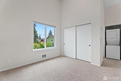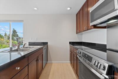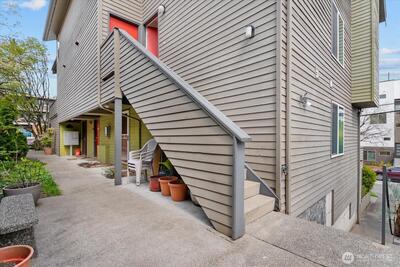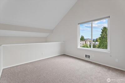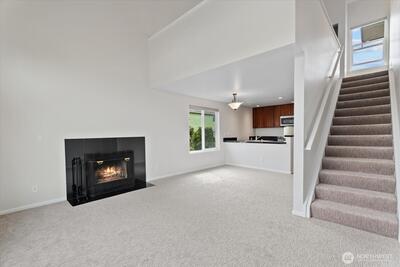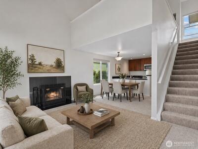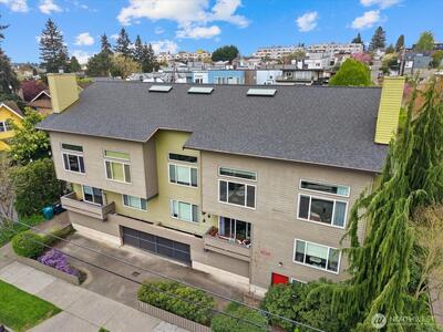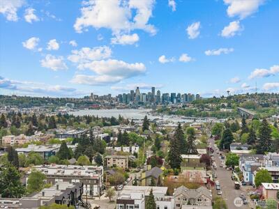 This top-floor, two-story loft condominium in the heart of Wallingford offers an ideal mix of light, privacy, and location. A southern-facing end unit, it’s filled with natural light and features city & Mt. Rainier views. The updated kitchen includes brand-new smart appliances, granite countertops, and stainless steel finishes, opening to a spacious living area with vaulted ceilings and a cozy fireplace. Upstairs, retreat to the bedroom, full bath, and in-unit laundry while taking in views of Mount Rainer and Seattle skyline. The home lives like a townhome with its own private exterior entry. Highlights include a 95 Walk/Bike Score, one secured garage parking space with storage, low HOA dues, and no rental cap. Strong rental appeal near major employers and educational institutions, with 6-month minimum leases allowed. Just 10 minutes to UW, Gas Works Park, and Green Lake, and close to Wallingford’s shops, cafés, and restaurants—while still offering a quiet, tucked-away feel. A