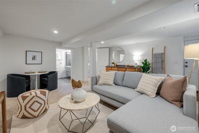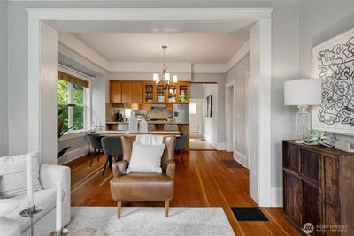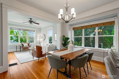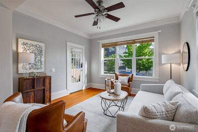 Welcome to this quintessential Craftsman sited between Fremont & the best of Ballard's shops, markets, breweries and more! With high ceilings and hardwood floors the main level flows openly from living room, dining and kitchen - to two bedrooms and one full bath. Lower level features a spacious family room with a plumed bar and separate entry on to the patio for easy entertaining or rental potential. The pet-friendly large & level fully-fenced yard with garden space offer you an oasis in urbanity. Secure garage and one additional off alley spot make access a breeze. Lots of updates like electrical, furnace and water heater. Pre-inspected. Don't miss the new Starbucks or great parks nearby!