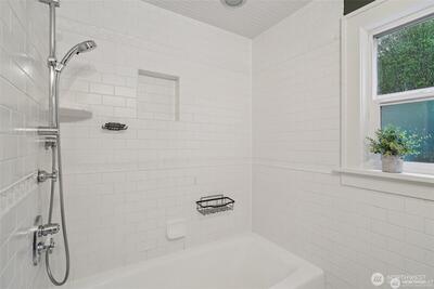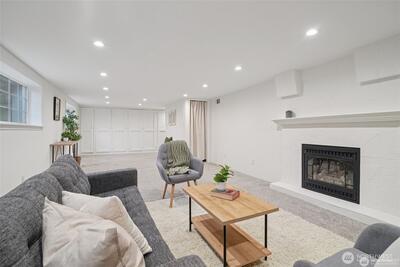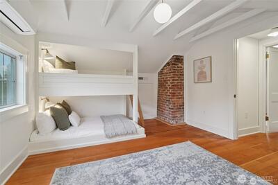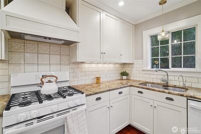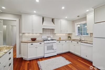 Classic 1923 Craftsman refreshed with thoughtful updates while maintaining its original character. Main floor features a primary bedroom and an updated bathroom with heated floors. Exceptionally spacious kitchen offers generous room to cook and gather, complete with granite counters and cherry wood flooring. Newly refinished hardwood floors run throughout. Lower level includes a generous family room with second gas fireplace, along with an additional bedroom and full bathroom—ideal for guests or flexible living. Conveniently located with easy access to transit and downtown Seattle.