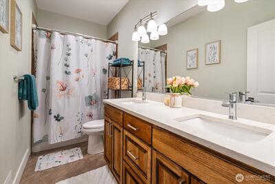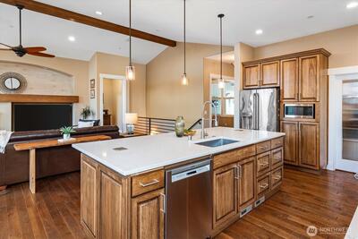 Waking up to the views of Lake Desire in every room, this is what everyday life feels like here. Set on 1.4 acres, this custom built 2017 home was designed for both quiet moments and gathering with others. Mornings start in the open kitchen with coffee at the large island, and evenings flow seamlessly out to the balcony overlooking the water. The main level offers ease with a primary en suite, laundry, den, and a separate dining space that’s perfect for hosting. Downstairs creates flexibility whether it’s hosting guests, working from home, or having a separate space to unwind. The light filled lower level offers its own living area, kitchenette, private laundry, and patio access. The oversized 2-car garage gives you room for more than just parking - think storage, hobbies, or a workshop, plus plenty of additional driveway space. Check out fun community details and activities at Lake Desire website & Night Farmers Market Facebook page. Tucked away but still convenient, you’re just