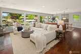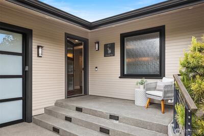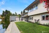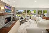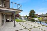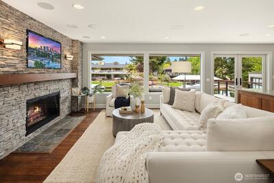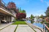 Canal-front properties in Newport Shores are measured carefully — by frontage, depth, and the rarity of what the water offers. Here, 135 feet of protected, deep-water frontage includes a private boathouse for vessels up to 48 feet, with direct passage to Lake Washington beyond. This combination defines an exceptional position in one of the Eastside's most coveted waterfront communities. The residence has been remodeled with care, expressing a Northwest Contemporary aesthetic anchored in natural materials, clean sightlines, and a deliberate orientation toward the water. The main level moves from a chef's kitchen — custom cabinetry, premium appliances, generous island — through light-filled living and dining opening onto the entertaining deck and canal beyond. A dedicated office completes the main floor. The primary suite offers a spa-appointed bath, walk-in closet, and direct access to the entertaining deck. The lower level extends the program: three bedrooms, a recreation room, a