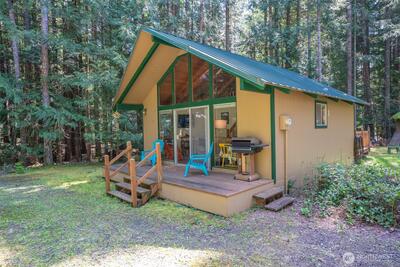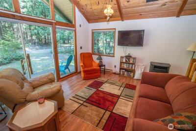 Escape to the tranquility of the woods with this charming Lake Cushman cabin—tucked among evergreens and designed for year-round enjoyment. Whether you’re looking for a weekend retreat or full-time living, this property offers the perfect blend of comfort and privacy. Thoughtfully maintained, the home features a durable metal roof, new water heater, and an efficient pellet stove. Inside, vaulted ceilings and expansive windows create a bright, open feel while bringing in natural light and showcasing the surrounding forest. The layout is warm, functional, and inviting—true to the Pacific Northwest cabin experience.Step outside to a spacious deck, ideal for relaxing, entertaining, or simply taking in the peaceful setting. High-speed internet is available, giving you the flexibility to stay connected when needed. The adjacent lot is included, offering added privacy and future potential—whether for expansion, additional structures, or simply extra space to enjoy. Located in the Lake