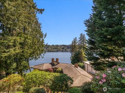 Welcome to Eastern Sunrises every morning over the cascades with beautiful lake views in this multi level home. A truly special location situated one house up from Lake Washington. Boasting almost a 1/2 acre with a serene, tranquil park like setting lot. Enjoy lake views from all 3 levels in this charming, loaded with character 4-bedroom / 3.5-bathroom 2690sq' home as it is or personalize it at your leisure. The whole top floor primary suite has beautiful lake views with potential for a huge deck. Great opportunity to personalize it now or build your dream home with lake views from multiple levels! Enjoy Mother Nature with deer activity & eagles living 45 feet above your house. Highly acredited schools. Ample parking. Effective yr 1982.