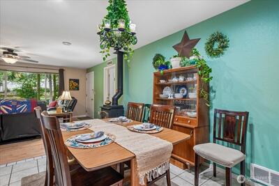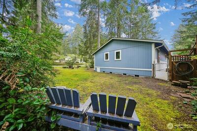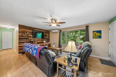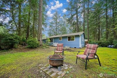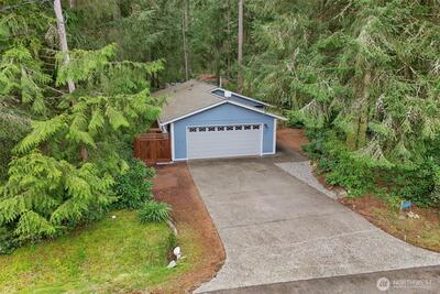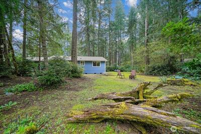 Embrace the serene pace of Island Living in this charming 3-bedroom, 1.75-bath home, perfectly positioned for recreation and relaxation. Located just a block from the Riviera Executive 9-Hole Golf Course, Lakeshore Restaurant, and Lake Josephine access, this property puts the best of Anderson Island at your doorstep. Situated on a private corner lot, enjoy peekaboo views of the second tee box from the home & property. Once inside, the interior radiates warmth with gleaming hardwood floors and a cozy gas stove in the main living area. Down the hall, a spacious primary bedroom & 3/4 ensuite lookout onto the tranquil, wildlife-filled setting. A bright dining nook leads to a fenced side yard—an ideal sanctuary for pets, private lounging, or garden space. Modern comforts abound, including a ductless mini-split for high-efficiency heating and cooling, a newer roof, and an insulated 1.5-car garage designed to house your vehicle, golf cart, and clubs. Two additional bedrooms provide versatil