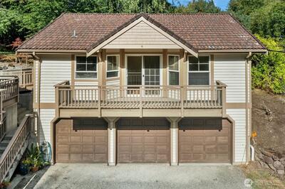 Discover rare income potential with this inviting property featuring a spacious ADU above a three-car garage—perfect for guests, extended living, or rental opportunities. Not your cookie-cutter home, this rare property is a stand-out with charming, heirloom details. The versatile 4-bedroom main home offers comfort and flexibility, ideal for cozy retreats or entertaining. Enjoy a sun-filled eat-in kitchen with French doors, opening onto a wrap-around deck, a private primary suite for peaceful escapes, and extra bedrooms for guests, work, or hobbies. The open-concept downstairs provides generous gathering space for home office or to entertain, while a charming secret loft adds a delightful touch. Outdoors, find fruit trees, room to garden, and patios perfect for relaxing or hosting. Centrally located in the award-winning Northshore School District, a short drive, easy bike ride, or leisurely walk to essential services, transportation options, Burke Gilman Trail, waterfront parks, publi