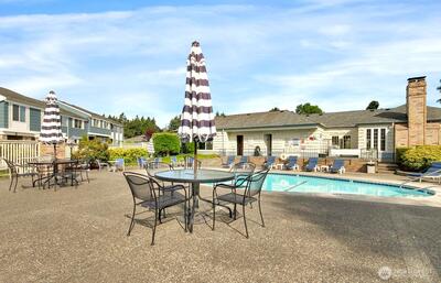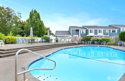 Mt Vernon Village beauty! Ground floor, single-level townhome on 15 acres in a park-like setting. No neighbors above you! Beautiful outdoor pool for those summer months and a clubhouse for larger gatherings. Nicely updated 2 bedroom, 1 bath home. Living and dining areas. Beautiful updated kitchen with tons of storage and just enough room for a bistro table or small bar with barstools. Massive 2 car garage with shop counter and lots of storage shelving. Private, fully-enclosed patio. Walk to Ft Steilacoom Park where you will find a Farmer's Market, festivals, dog park, playground, soccer fields, and many trails. Close to Puget Sound, Pierce College, JBLM, shopping, restaurants, coffee shops, gyms, library.
