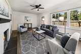 Set in North Seattle’s Olympic Hills neighborhood, this spacious and flexible home is an excellent opportunity for comfortable living AND future potential! Expansive living room is bathed in natural light from picture windows and features a cozy fireplace. Kitchen boasts casual dining area, slate tile countertops and cherry cabinets! Convenient laundry area is just off kitchen too! Three, well proportioned, bedrooms and two full bathrooms means no one is fighting for space! Huge fourth bedroom is set back, for more privacy, and could serve as family room, too. With tons of space and entrance to back yard, its perfect for home office, media room or hosting guests! Outside, the fully fenced front yard is ready for your four legged family member or your green thumb! Expansive backyard boasts bright, South facing deck, perfect for a barbeque or a sunny day + storage shed. Off street park back here (room for 3!) or expand yard to meet your desires! Updated with new vinyl flooring and fre