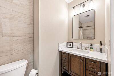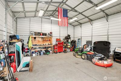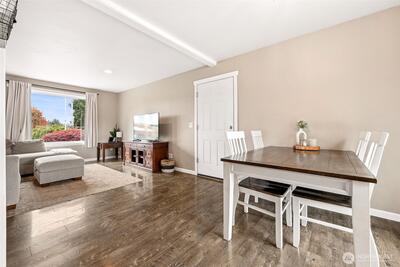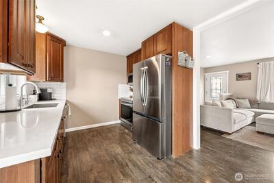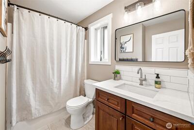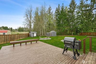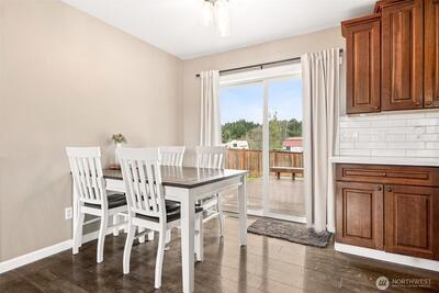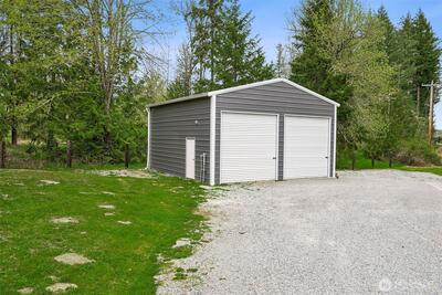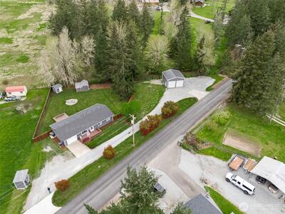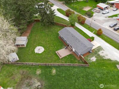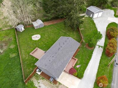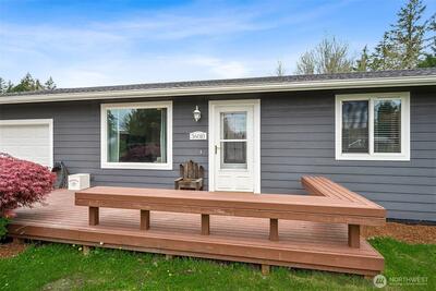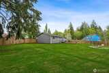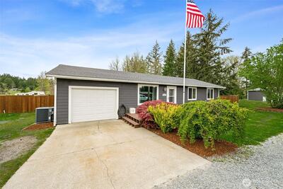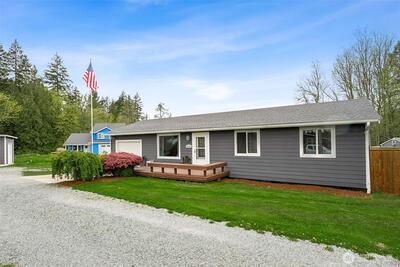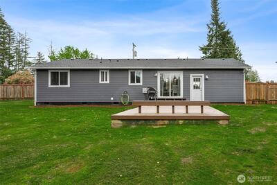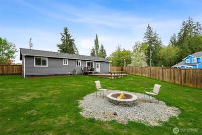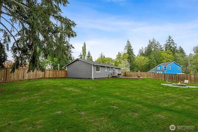 Beautifully updated rambler offering an open floorplan with thoughtfully designed living space. All new for peace of mind: exterior paint, roof, deck, garage door/motor and pressure tank in well house! The bright and inviting living room flows seamlessly into the dining area just off the updated kitchen, complete with quartz countertops, stainless steel appliances, full-height tile backsplash, and a window overlooking the property. The home features 3 generously sized bedrooms and 1.75 updated bathrooms with modern vanities, tile accents, and a beautifully tiled shower in the full bath. Step outside to the huge fenced, park-like backyard featuring a bonfire pit and an entertainment-sized deck with built-in seating—perfect for gatherings. Detached garage/shop 25x25, 625 sq feet, 12 ft tall W/10-foot doors and 100-amp service providing added storage, workspace, or hobby potential and space for RV parking! Centrally located just minutes to shopping, dining and entertainment! Eatonville