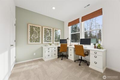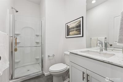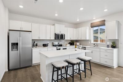 Red Tag Sales Event Home! The Legacy plan at Torrey Farms in Puyallup offers space, style, and convenience. This brand-new home features a large backyard and a highly desirable main-floor bedroom paired with a nearby bathroom and walk-in shower—perfect for guests or flexible living. The open-concept layout makes everyday living and entertaining effortless, with abundant storage throughout. The luxurious kitchen is a standout, showcasing quartz countertops, soft-close shaker cabinets, a spacious walk-in pantry, and an oversized island with breakfast bar seating. Just off the garage, a convenient drop zone includes a built-in bench, cubbies, and hooks to keep things organized. The main-floor tech niche offers versatility as a home office, additional storage, or even a secondary pantry. Upstairs, a generous bonus room is ideal for movie nights, gaming, or a playroom. The primary suite is expansive enough for a king-sized bed and features a spa-inspired bath and an oversized walk-in clos